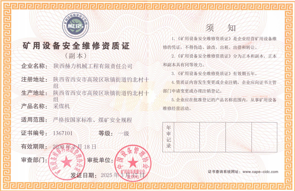 礦用設(shè)備安全生產(chǎn)資質(zhì)證